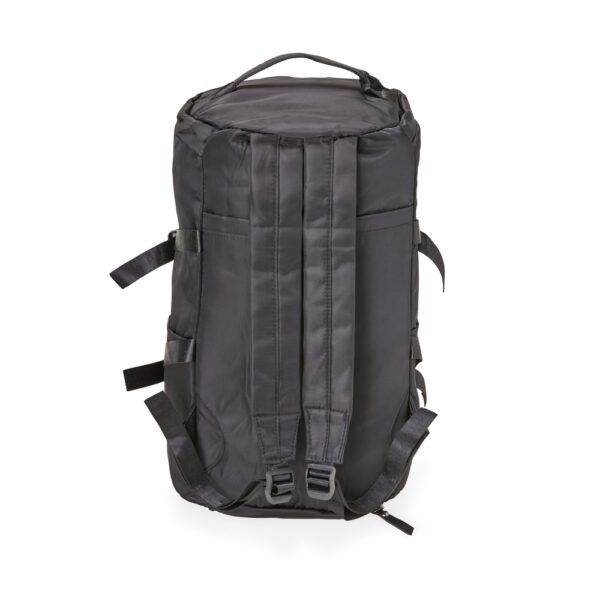Bolsa esportiva de 25 litros em poliéster de impacto impermeável com três compartimentos, sendo um deles exclusivos para tênis. Compartimento principal com dois bolsos, sendo um deles com zíper exclusivo para itens molhados. Com bolsos laterais e duas alças de mãos, a bolsa contém alças de compensação, alça transversal removível e alças para as costas ocultas no compartimento inferior, podendo ser transportada como mochila.