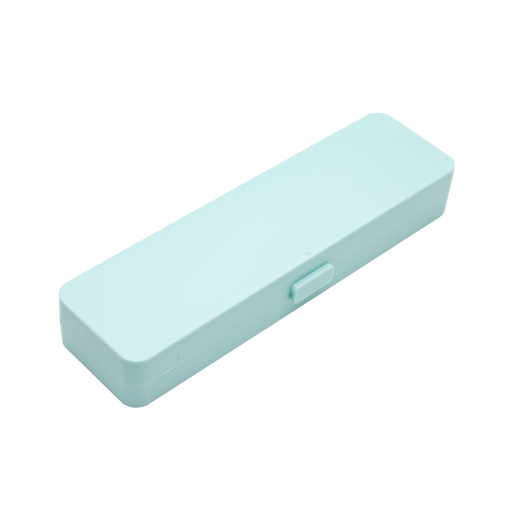 Conjunto caneta metálica com estojo de plástico e berço espumado. Carga esferográfica azul e acionamento por rotação.