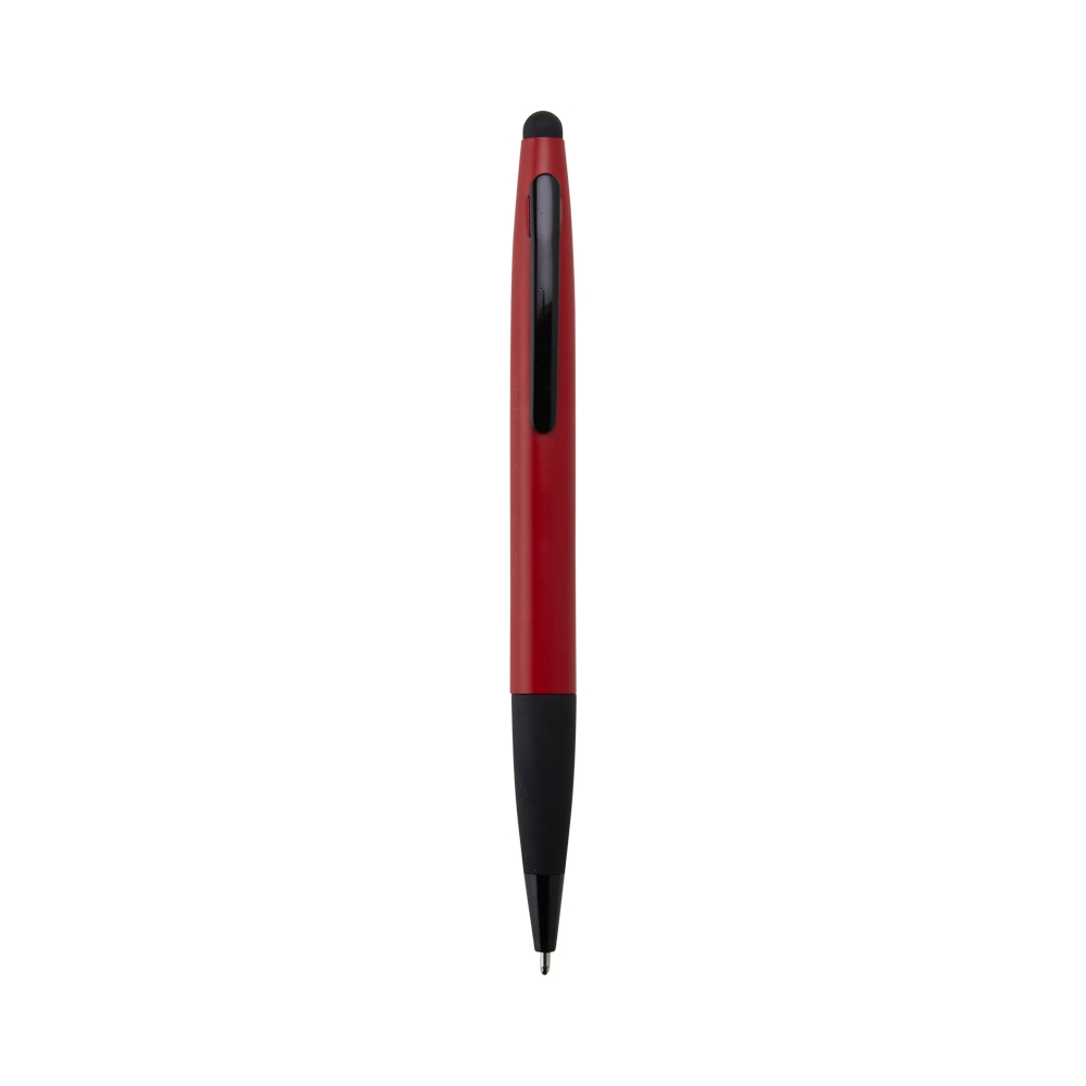 Caneta metálica com touchscreen, carga esferográfica azul 1.0mm e acionamento por rotação.