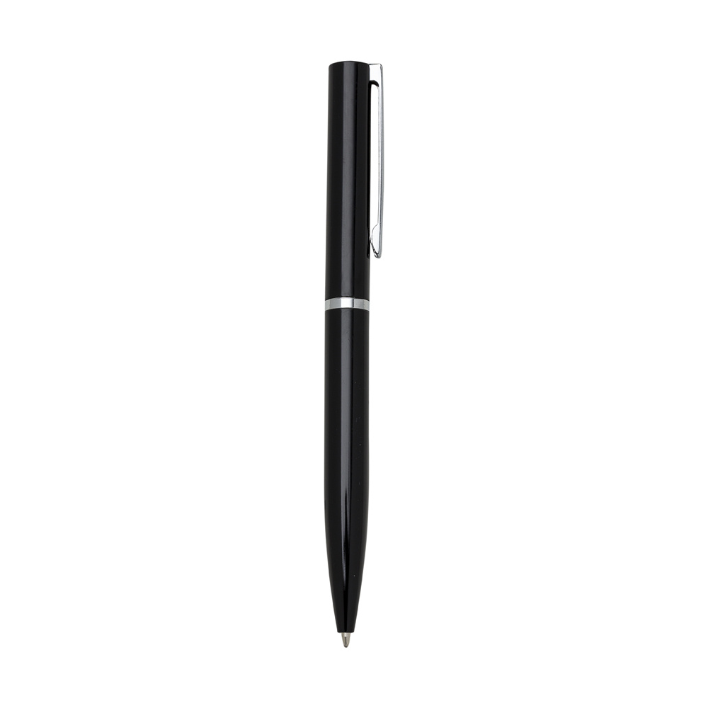 Caneta semimetálica com carga esferográfica azul e acionamento por rotação. OBS.: PEDIDO APENAS MÚLTIPLO DE 50 PEÇAS!