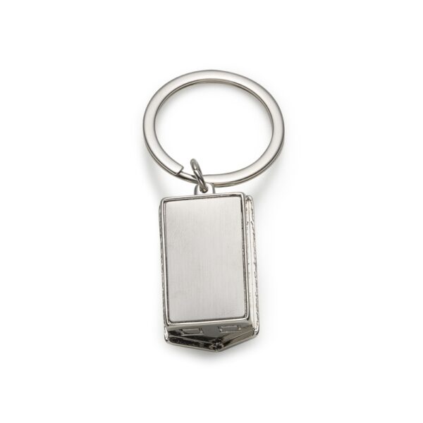 Chaveiro 3D formato casa brilhante, contém detalhes em relevo. Parte inferior com chapa inox para personalização.