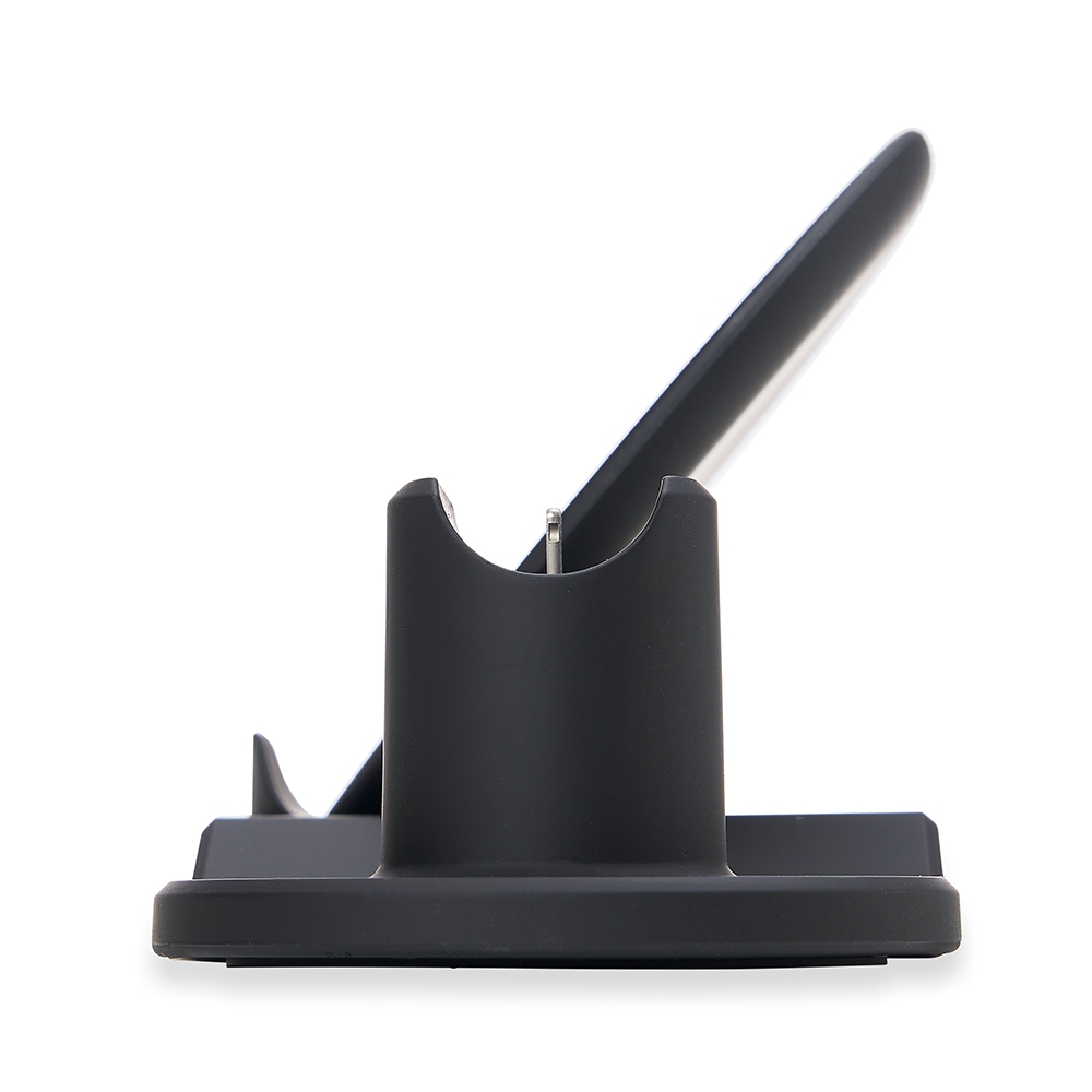 Estação de carregamento 3 em 1 para celular, iwatch e fones tipo airpods. Com sistema de carga por indução rápida, a estação permite o carregamento sem fio de celulares e iwatchs habilitados com estas tecnologias, além destes suportes, a estação conta ainda com um carregador para fones estilo airpods através do conector Lightning. Sua base contém tapetes de silicone antiderrapantes e frestas inferiores para auxiliar na dissipação de calor durante o carregamento. Acompanha cabo USB.