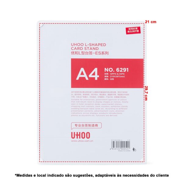 Expositor porta retrato A4 feito em poliestireno com placa acrílica.