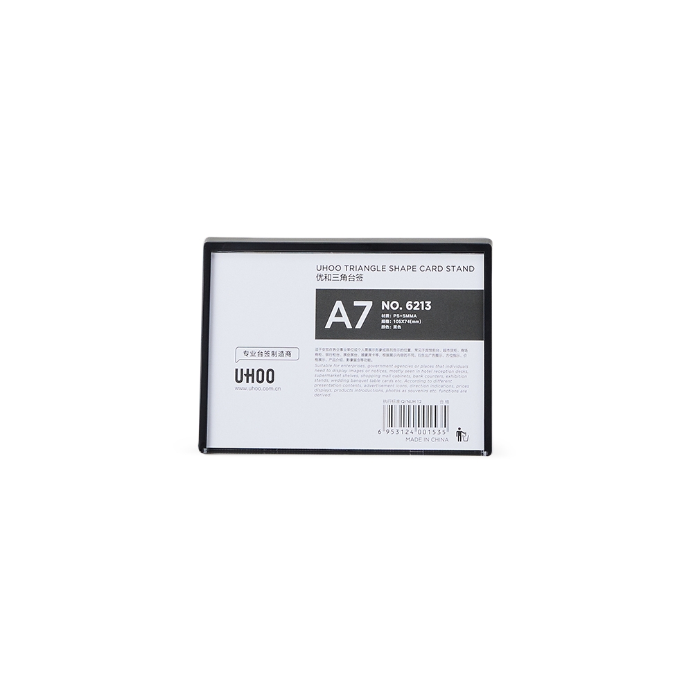 Expositor porta retrato A7 feito em poliestireno com placa acrílica.