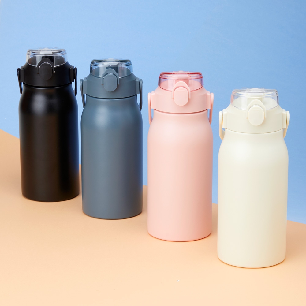 Garrafa Térmica com parede dupla, capacidade de 1 Litro. Tampa com trava de segurança, botão de acionamento e tampa de proteção para o bocal. Com alça para transporte, acompanha um canudo e dois acessórios de extensão de canudo.