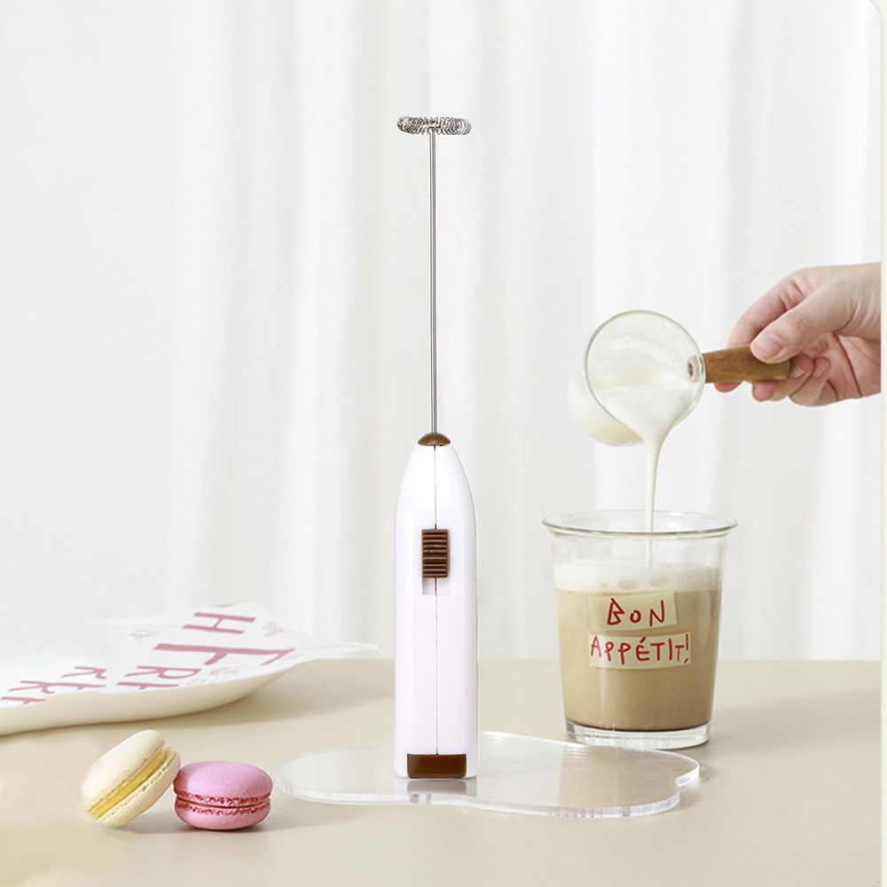 Misturador elétrico portátil. Para o funcionamento do produto necessita de duas pilhas AA (não acompanha).