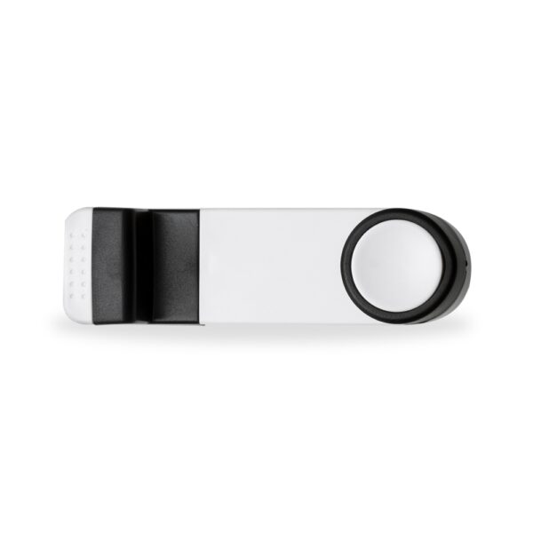 Suporte veicular com haste regulável e garra de encaixe. Suas extremidades emborrachadas evitam o deslizamento do celular.